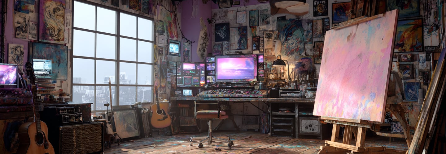 Criação de trilhas sonoras que dialogam com artes visuais e inteligência artificial.
